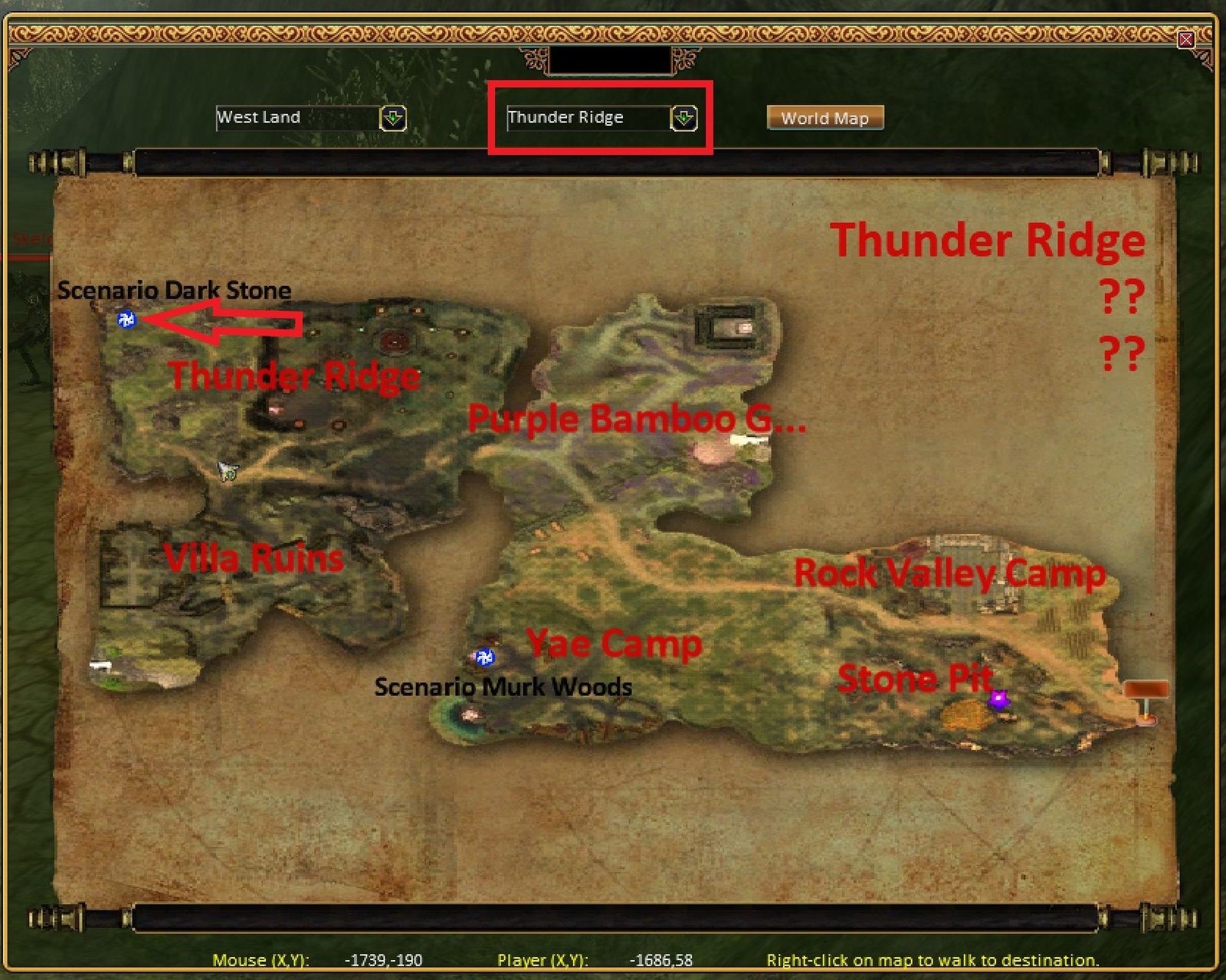 The entrance to Dark Stone Area is at coordinates (-1767, 225)