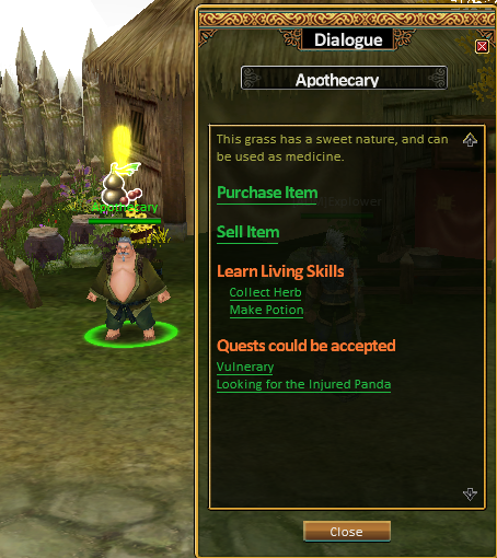 The quest begins in Sky Village, where players should visit the Apothecary at level 10 to receive the initial mission. The Apothecary sends the player to Bamboo Forest in Cloud Mountain, where the Wounded Panda is located.