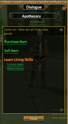 When interacting with the Apothecary, players usually see options such as:
