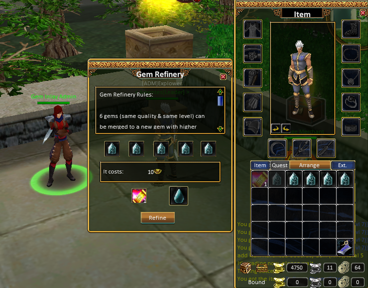Gem Inlay Admin is a key NPC responsible for the gem socketing and gem refinement system. Through this NPC, players can improve their equipment by creating sockets, inserting gems, and refining gems into stronger versions.
