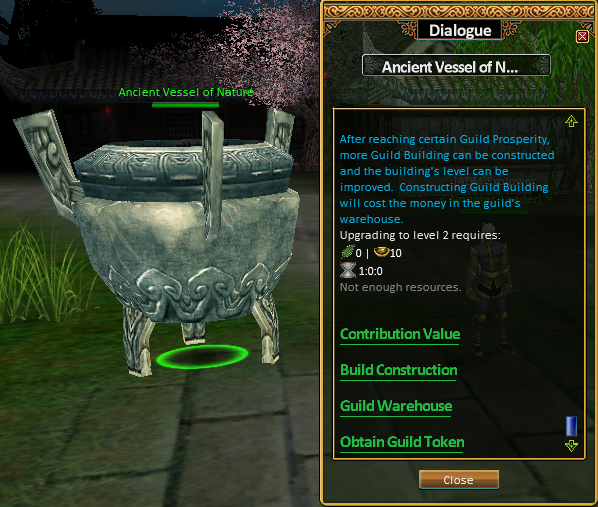 The system encourages players within the same guild to work together. By interacting with objects such as the Ancient Vessel of Nature, guild members contribute to the overall development and activity of the guild.